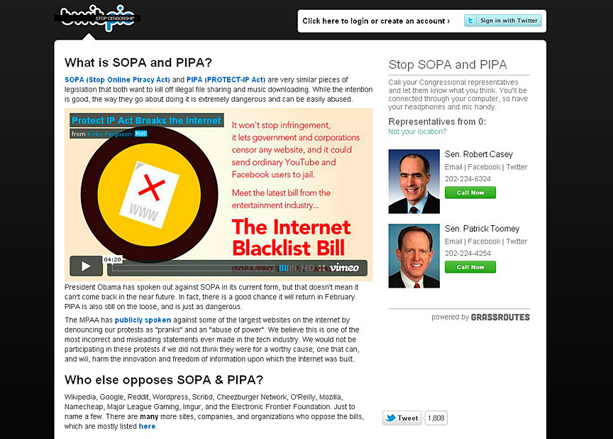 Сегодня несколько ресурсов заблокировали сами себя. в знак протеста против обсуждения какого-то закона в США, в частности англоязычная Вики, может и твиттер тоже