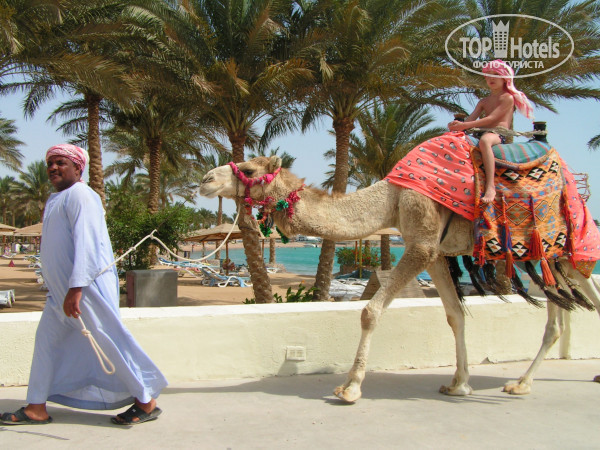 На Пляже есть свой верблюд Оскар, ему 3 года, хозяину животного разрешают посещать пляж и предлагать свои услуги, очень добрый любитель фруктов 5 баксов малый круг, 10 большой